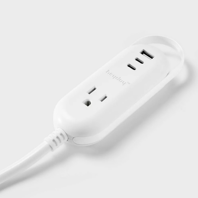 This design is a simple and adaptable power strip made Heyday's power management collection. It offers a minimal yet unique esthetic that perfectly represent the brand. The integrated hook and cord tie are details that make the user experience of is every day item just that little bit better.